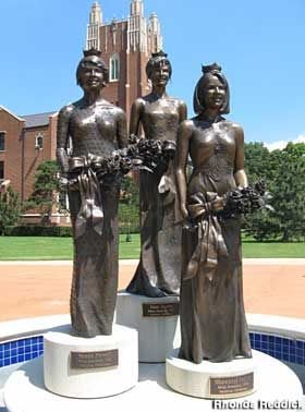 Oklahoma City University, run by the Methodist Church, has an interesting claim to fame: Three Miss Americas came from it. In honor of this accomplishment, they erected three life-size statues of their own Miss Americas: